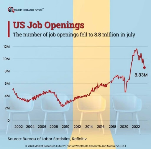 In a press release, the agency characterized the month-over-month decline as “little changed” but noted that the year-over-year drop amounted to 877,000 fewer job openings.