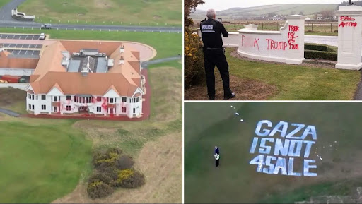 Trump has labelled those responsible for the damage as “terrorists” before adding that he hopes they would be “treated harshly” by the Scottish justice system. Trump also wrongly claimed that three people were in prison as a result of police inquiries. A 33-year-old man was charged over the incident and appeared at Ayr sheriff court on Monday. Kieran Robson was charged with malicious mischief and made no plea during the brief hearing. He was released on bail pending a further court appearance. Another man, aged 75, and a 66-year-old woman were arrested and released pending further inquiries.